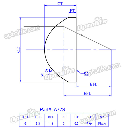 这些常规的非球面透镜优化用于可见光聚光, 效果极佳. 广泛用于集光, 投影, 探测等光学系统.